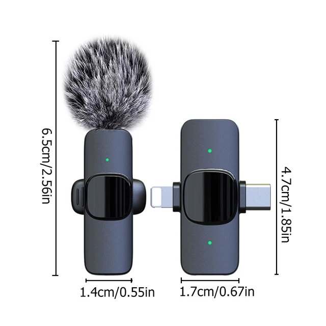 Microfone de lapela, sem fio, plug-play, 2 em 1; para smartphone, câmera, laptop/PC; ideal para gravação de vídeo/áudio, entrevista, vlog.